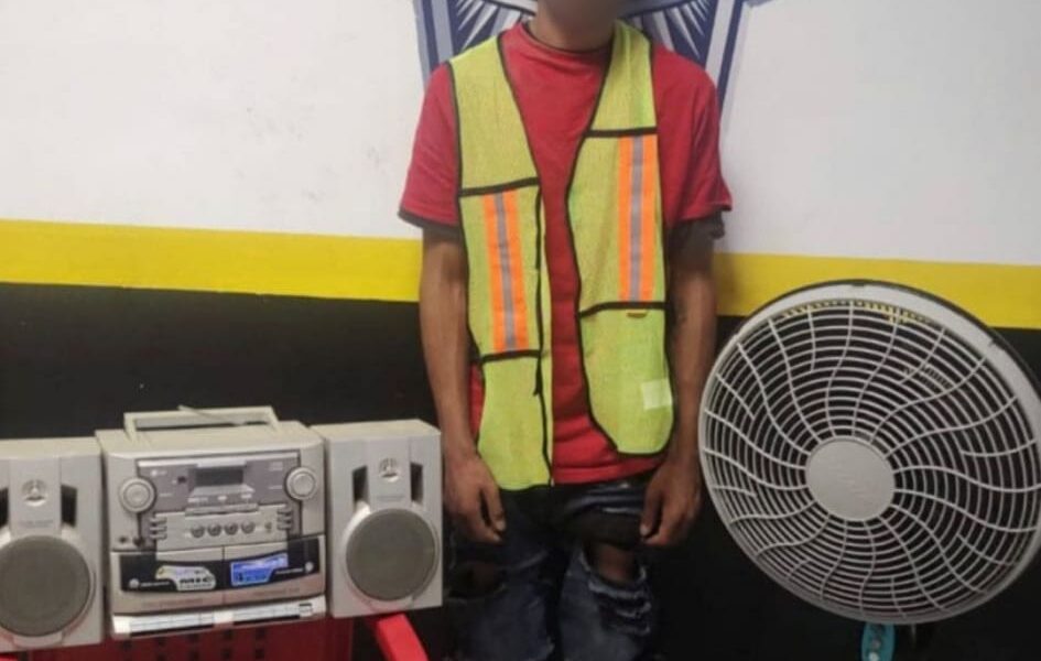 Fueron agentes de la Dirección Municipal de Seguridad Pública, quienes realizaron la detención de Juan Manuel “N”, de 28 años, quien fue señalado por una mujer que observó las acciones que este hombre realizaba en una escuela intentando sustraer una radiograbadora de color gris marca LG y un ventilador de color negro con gris de la marca MYAIR, que se encontraban al interior de esta.